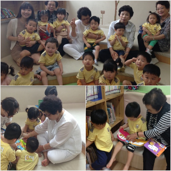 금일 진행된 프로그램을 어린이 도서관에서 어린이집 아동들과 함께 책을 읽고 소통하는 시간이였으며 어린이집 원아와 경로당 임원들이 한결 가까워질 수 있는 시간이었습니다.