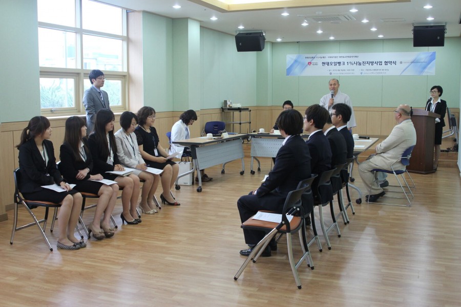 이에 시립강북노인종합복지관에서는 "2013년 현대오일뱅크 1%나눔 진지방사업"과 관련하여 금일 6월 18(화), 본 복지관 3층 정진실에서 협약식이 진행되었습니다.