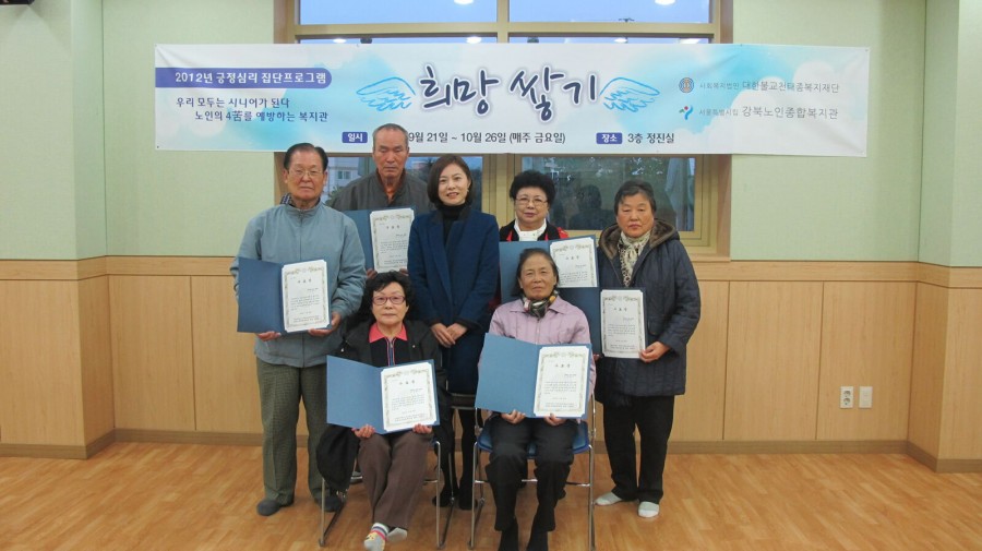 시립강북노인종합복지관에서는 복지관 어르신들을 대상으로 건강한 노후생활을 지원하고자 "우울증 감소를 위한 긍정심리 집단프로그램"을 진행하고 있습니다.