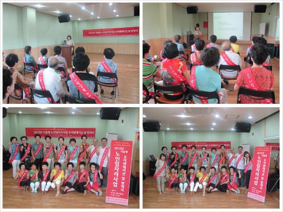 2012년 서울형 노인일자리사업에 선정이 되어 북한산둘레길지킴이사업을 8월부터 12월까지 실시하게 되었습니다. 이에 북한산둘레길지킴이 20명을 선발하였으며, 북한산둘레길지킴이사업에 대한 안내 및 사업에 대해 알리고자 오리엔테이션 및 발대식을 실시하였습니다.*일시 : 2012. 8. 2(목), 14:00~15:00*장소 : 3층 정진실*인원 : 총 20명*내용 : 오리엔테이션 및 발대식