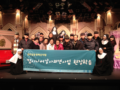 시립강북노인종합복지관 복지2과 경로당지원팀에서는 특화사업 컴시니어파견사업 일환으로 현장학습을 진행했습니다. 컴시니어강사로 활동하고 있는 22명의 강사님들과 함께 넌센스 뮤지컬 관람과 맛있는 저녁을 함께 했습니다. 이번 행사로 인하여 컴시니어강사들이 단합될 수 있는 시간이 되었습니다.
