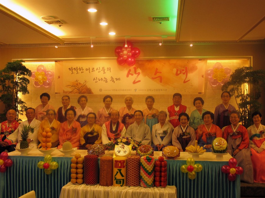 한편 “산수연” 행사를 위해 백년해로한복점에서 한복 대여비 일부분을 후원해 주셨고, 개인봉사자 안명화님이 더욱 돋보이는 무대를 위한 풍선 장식, 조광스튜디오에서 사진촬영을 진행해 주셔서 더욱 풍성한 잔치가 되었습니다.