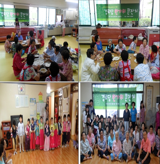 시립강북노인종합복지관 복지2과 경로당지원팀에서는 경로당 지역사회교류 일환으로 경로당 송편나누기 행사를 진행했습니다. 추석을 맞이하여 음식나누기, 민속놀이, 어린이집 공연이 진행되어 경로당 어르신들에게 즐거움을 줄 수 있었습니다. 이번 행사에 도움을 주신 오누이어린이집, 미아벽산아파트 부녀회, 도와주신 자원봉사자 분들에게 감사드립니다.