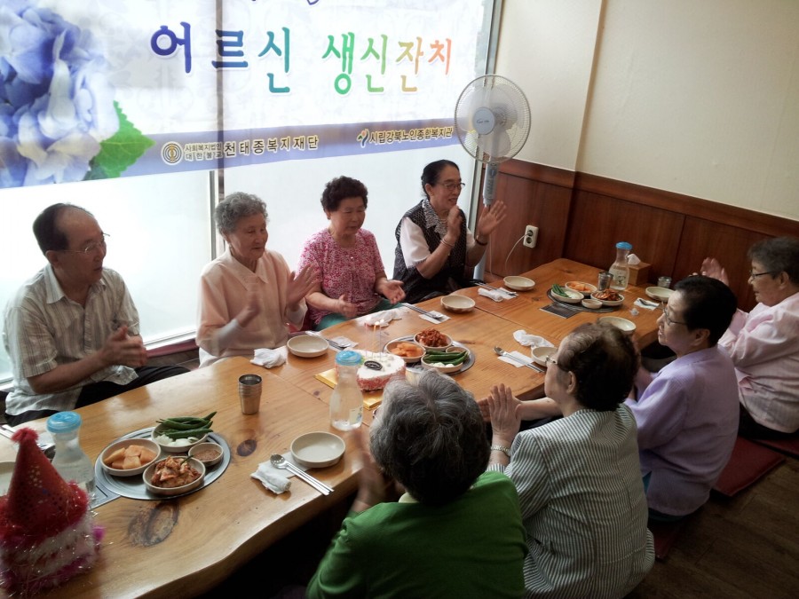 시립강북노인종합복지관에서는 생신을 맞은 재가수혜자 어르신 27분을 모시고 강북구 수유동에 위치한 다라수 참 감자탕(식당)에서 생신잔치를 진행하였습니다.