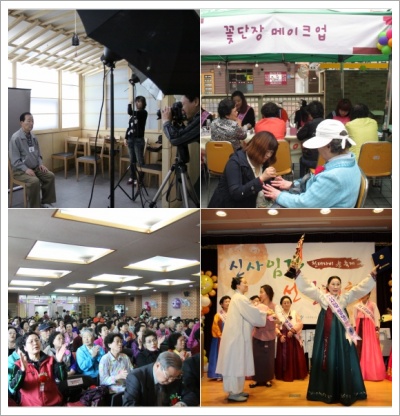 이어서 한복심사, 삼행시 짓기, 장기자랑 등 지덕체를 겸비한 어르신을 선발하여 복지관 홍보대사로 활동하는 신사임당선발대회, 어르신들의 장수를 기원하며 사진을 촬영해드리는 장수사진촬영 등 특별행사가 마련되었고 밸리댄스, 태권도, 초청가수 등 다채로운 공연도 펼쳐져 효 축제의 흥겨움을 더했습니다. 이와 함께 부대행사로 연등만들기, 네일아트, 메이크업, 건강마당 등 다양한 이벤트가 진행되어 어르신들의 즐거움은 배가 되었습니다.