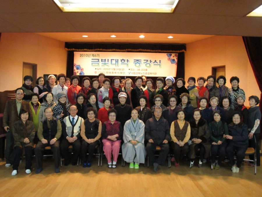 금일 행사에서는 관장님, 금빛대학 김태회 회장님의 신년인사와 함께 금빛대학의 한 해를 돌아볼 수 있는 동영상을 관람하며 2010년 제6기 금빛대학을 마무리하였습니다.
