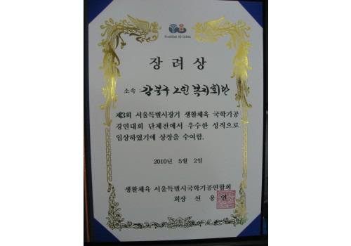 단전호흡반 "제3회 서울특별시장기 국학기공경연대회" 수상