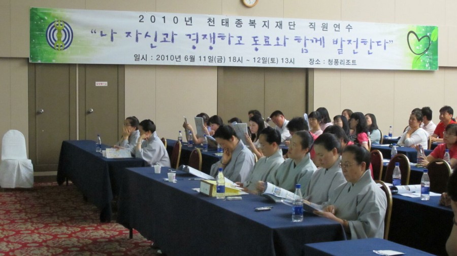 지난 6월 11일~12일, 1박 2일의 일정으로 진행한 2010년 천태종복지재단 직원연수에 본 기관에서는 관장 영운스님을 비롯한 32명의 직원들이 참석하였습니다.
