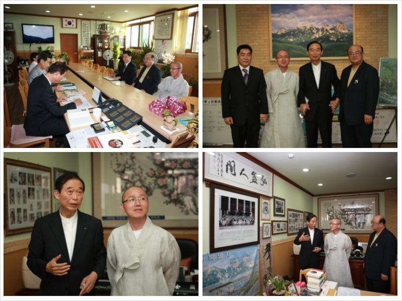 7월 29일 오후 5시, 복지관에 새롭게 취임하신 김창근 관장님(월도스님), 나태선 부장님,  대한불교 천태종복지재단의 김영 사무처장님은 강북구청 구청장실에 방문하여 김현풍 구청장님과 함께 즐거운 첫만남을 가졌습니다.