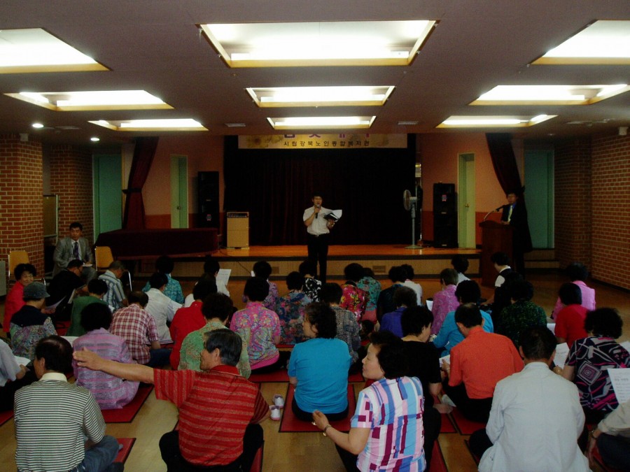 어르신 49명, 직원 6명 총 55명이 참석한 자리에서 공지사항 전달, 하반기