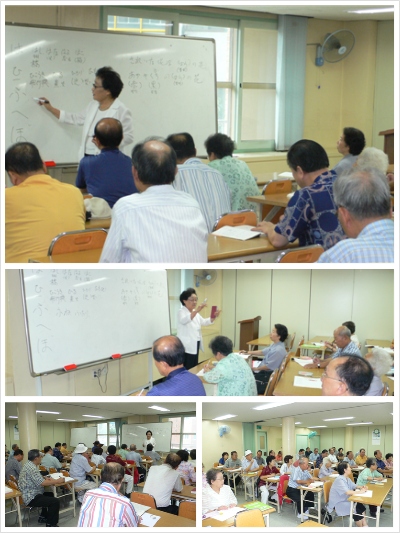 바로 일본어첫걸음 수업인데요. 많은 어르신들이 기초적인 문법과 단어, 문장연습을 통해 언어능력이 날로 향상되고 있습니다. 사진으로도 열기가 느껴지시죠? 일본과의 어두운 과거사를 잊고 새로운 마음가짐으로 일본을 바라보며 그들의 언어를 배우려는 어르신들의 건강한 정신과 노력에 박수를 보내드립니다..^-^