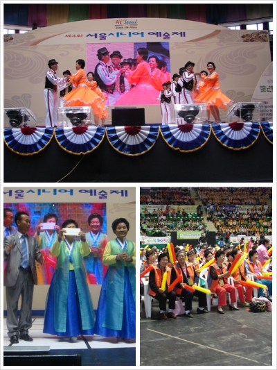 지난 10월 9일 장충체육관에서 열린 제4회 서울 시니어 예술제에 복지관 어르신100여 분을 모시고 참여를 했습니다.
