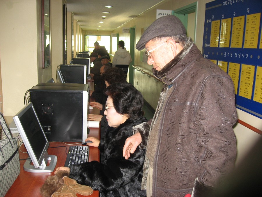 서로에게 컴퓨터를 가르쳐 주시는 어르신들~