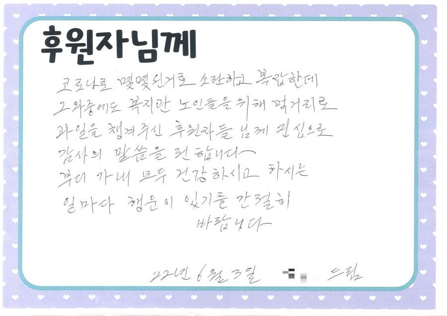 총 1,145,000원의 후원금이 모금되었으며, 강북구 내 취약계층 어르신들을 대상으로