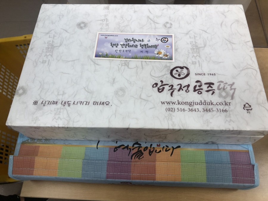 이번에는 '방탄소년단 멤버 지민'의 생일을 맞이하여 지역의 저소득 어르신들과 함께 나누고자 흑임자떡을 후원해주셨습니다.