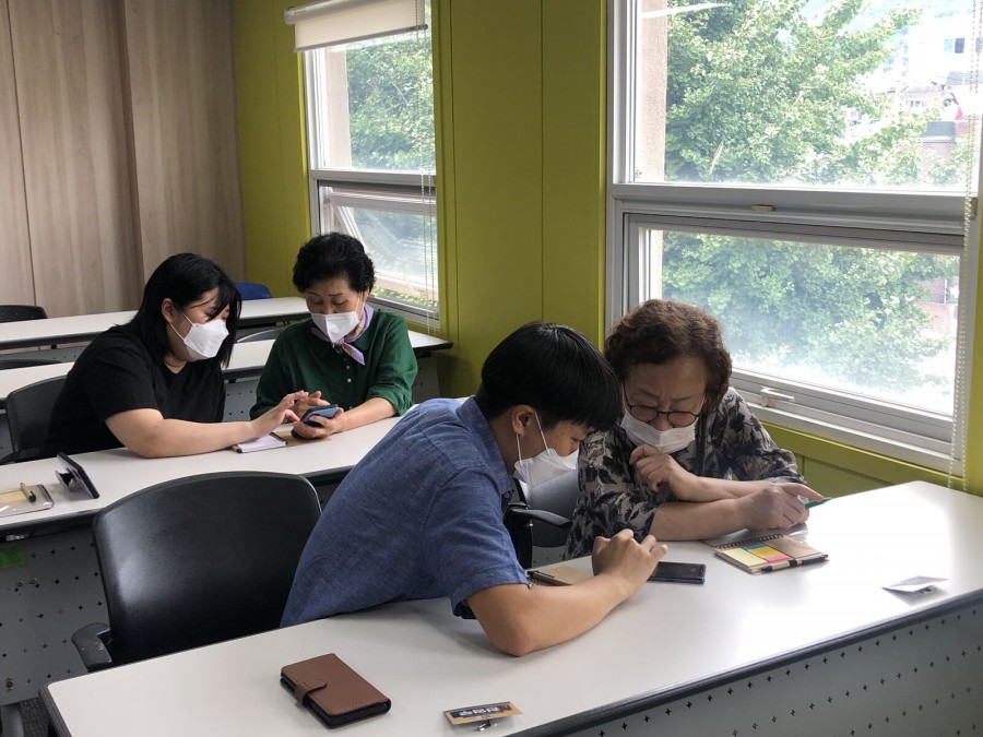 지역조직사업에서는 스마트폰 교육을 받고자 하는 어르신을 대상으로 '스마트폰과 멘토링이 함께하는 멘토스' 프로그램을 진행하였습니다. 어르신과 대학생 자원봉사자 1:1 매칭으로 맞춤형 스마트폰 교육을 진행합니다.