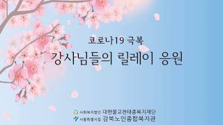 안녕하세요~! 시립강북노인종합복지관 입니다. 오늘도 코로나19 극복을 위한 강사님들의 릴레이 응원 메세지가 지속되고 있습니다. ^^