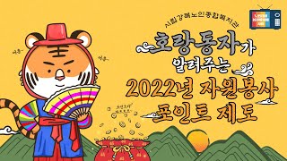 지역협력팀에서는2022년 노인 자원봉사활동을 더욱 활성화하고 자원봉사자에 대한 지지 및 보상을 지원하고자새로운 포인트 제도를 실시하려 합니다. 노인 자원봉사자 포인트제도의…