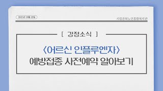 시니어지역종합상담사업에서는 어르신 및 지역주민께 다양한 복지정보를 전달하기 위해 강북복지정보소식(강정소식) 동영상을 준비하였습니다. 이번 시간에는 인플루엔자 예방접종 사전예약에 대…