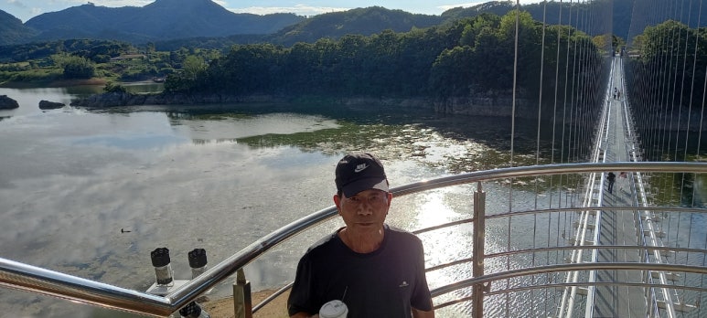 필자와 하얀출렁다리. 옥정호붕어섬 주변 사진들은 내블로그에 올린사진들입니다.