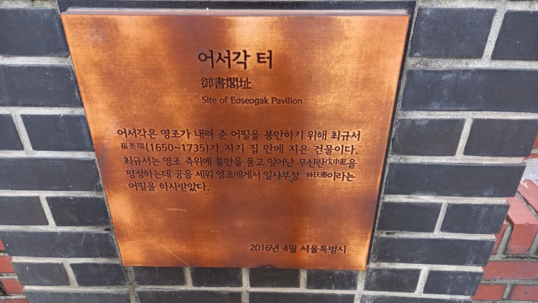 덕수궁 돌담길을 걷다보면 어서각 터가 나오는데 어서각은 조선영조가 내려준 어필을 봉안하기 위해
