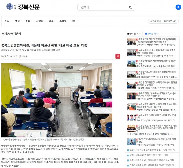 [2025.04.05] 강북노인종합복지관, 비문해 어르신 위한 ‘새로 배움 교실’ 개강 - 서울강북신문