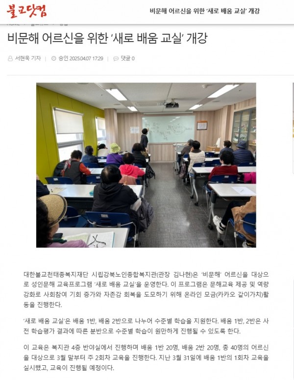 [2025.04.07] 비문해 어르신을 위한 ‘새로 배움 교실’ 개강 - 불교닷컴
