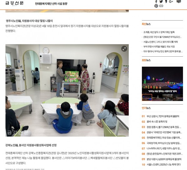 [2025.04.18] 천태종복지재단 산하 시설 동향 '강북노인福, 자원봉사활성화사업에 선정' - 금강신문