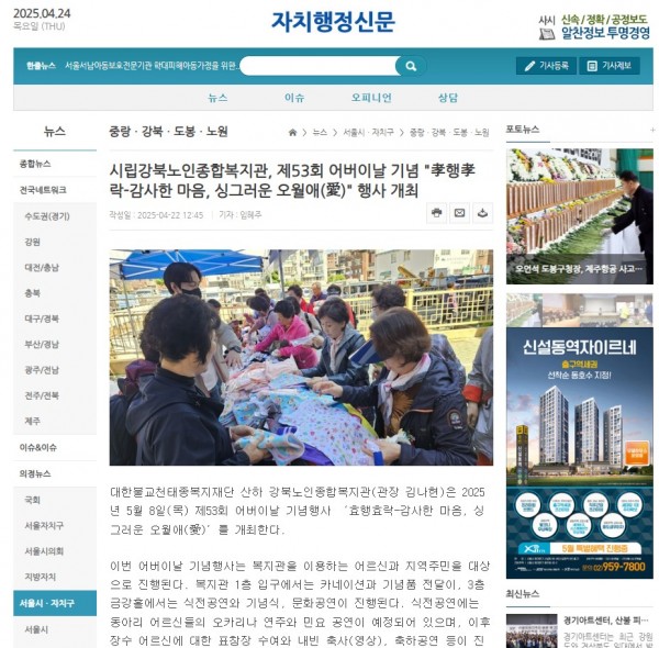 [2025.04.22] 시립강북노인종합복지관, 제53회 어버이날 기념 孝행孝락-감사한 마음, 싱그러운 오월애(愛) 행사 개최 - 자치행정신문