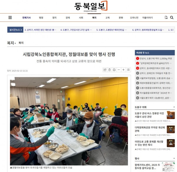 [2025.02.13] 시립강북노인종합복지관, 정월대보름 맞이 행사 진행 - 동북일보
