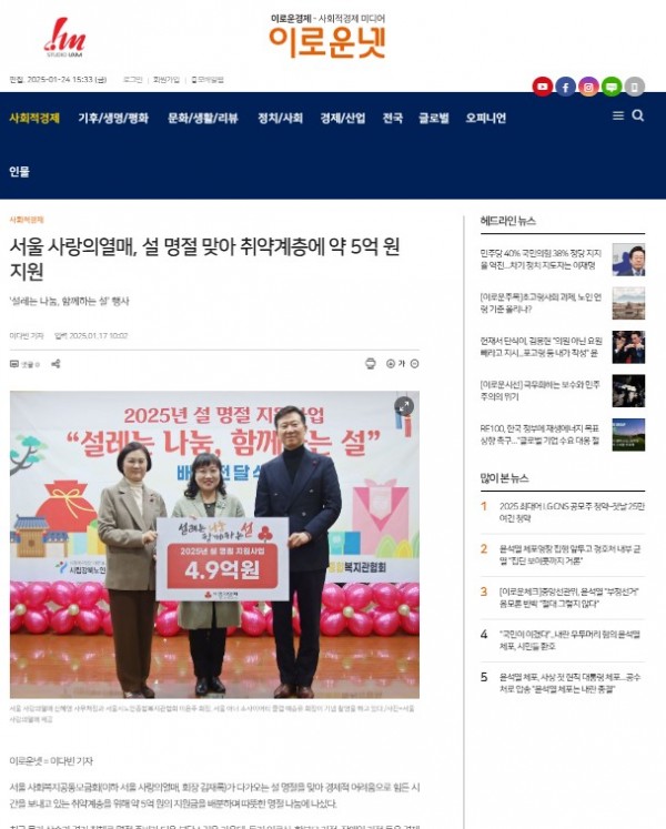 [2025.01.17] 서울 사랑의열매, 설 명절 맞아 취약계층에 약 5억 원 지원 _ 사회적경제 - 이로운넷
