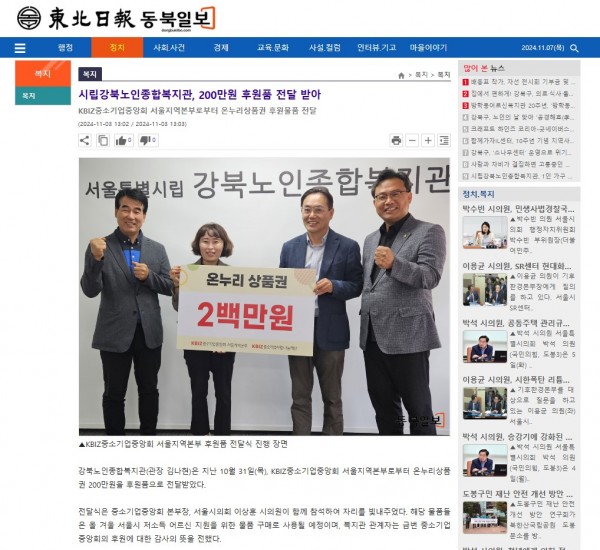 [2024.11.03] 시립강북노인종합복지관, 200만원 후원품 전달 받아-동북일보
