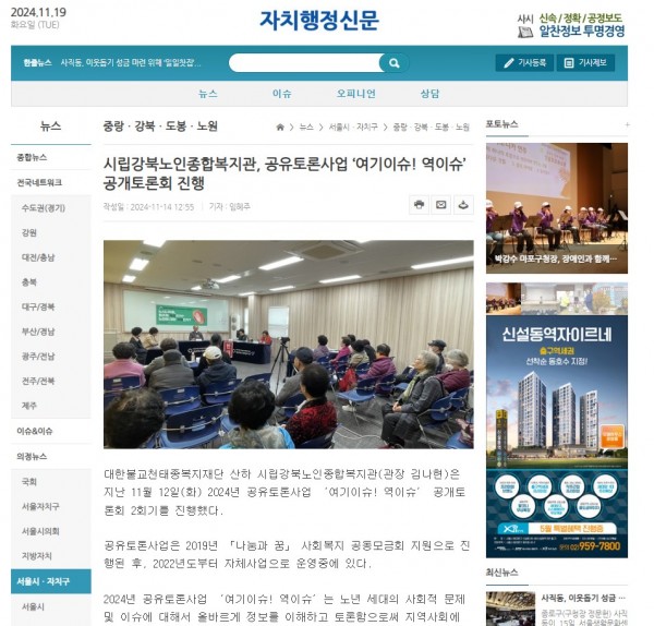 [2024.11.14] 시립강북노인종합복지관, 공유토론사업 ‘여기이슈! 역이슈’ 공개토론회 진행-자치행정신문