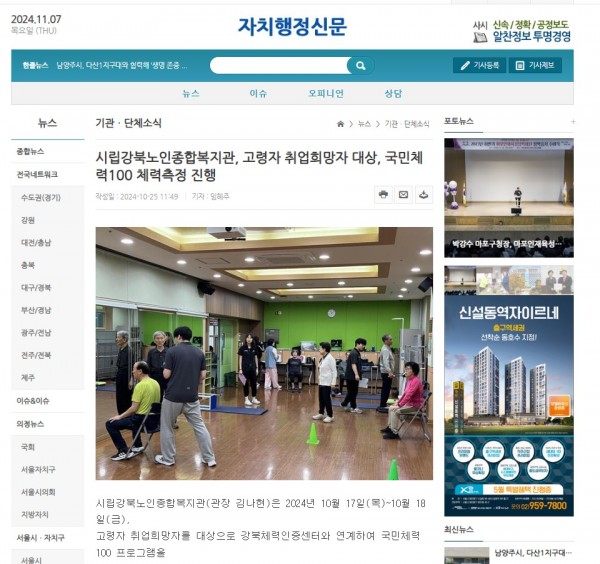 [2024.10.25] 시립강북노인종합복지관, 고령자 취업희망자 대상, 국민체력100 체력측정 진행