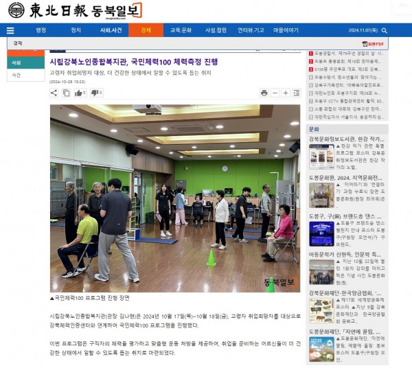 [2024.10.28] 시립강북노인종합복지관, 국민체력100 체력측정 진행-동북일보