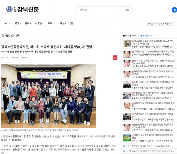 [2024.10.31] 강북노인종합복지관, 제10회 스마트 경진대회 ‘세대를 잇(IT)다’ 진행 _ 복지관_복지센터 _ 서울강북신문