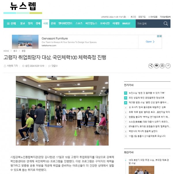[2024.10.29] 고령자 취업희망자 대상, 국민체력100 체력측정 진행 - 뉴스렙