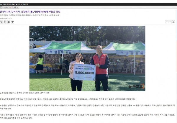 [2024.10.06] 한국마사회 강북지사, 공경해효(孝),사랑해효(孝)에 후원금 전달-동북일보