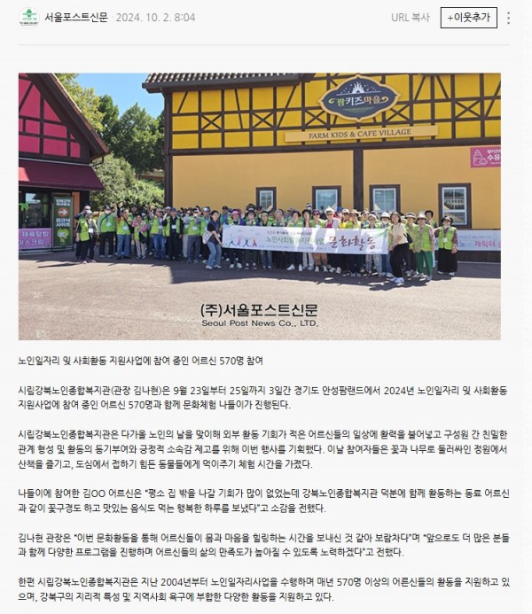 [2024.10.02] 시립강북노인종합복지관 안성팜랜드 문화체럼 나들이 진행-서울포스트