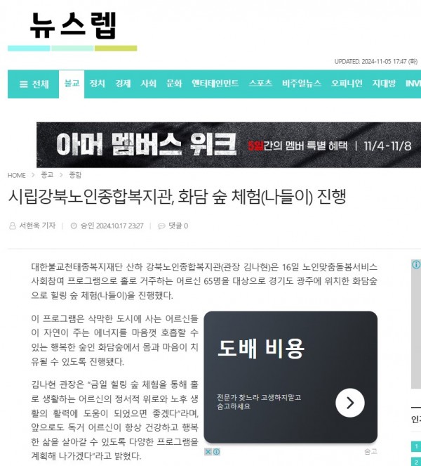 [2024.10.17] 시립강북노인종합복지관, 화담 숲 체험(나들이) 진행 - 뉴스렙
