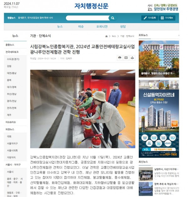 [2024.10.21] 시립강북노인종합복지관, 2024년 교통안전베테랑교실사업 광나루안전체험관 견학 진행-자치행정신문