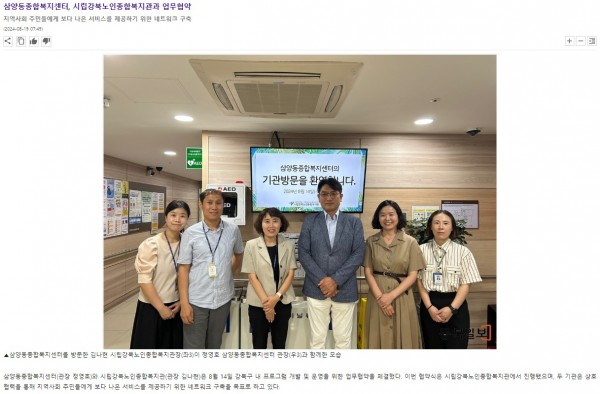 [2024.08.19] 삼양동종합복지센터, 시립강북노인종합복지관과 업무협약(동북일보)