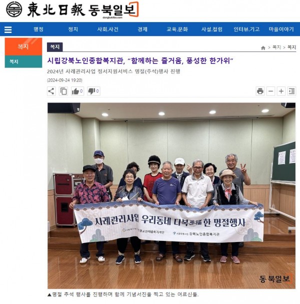 [2024.09.24] 시립강북노인종합복지관, “함께하는 즐거움, 풍성한 한가위”-동북일보