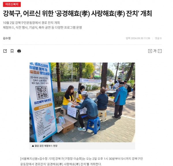 [2024.09.30] 강북구, 어르신 위한 ‘공경해효(孝) 사랑해효(孝) 잔치’ 개최- 서울복지신문