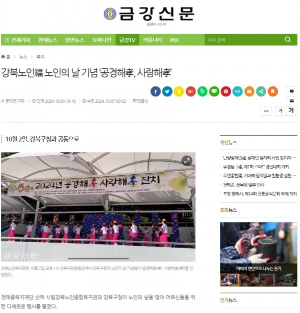 [2024.10.04] 강북노인福 노인의 날 기념 ‘공경해孝, 사랑해孝’ - 금강신문