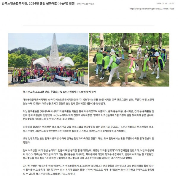 [2024.05.14] 강북노인종합복지관 2024년 홍천 문화체험(나들이) 진행_강북신문