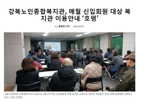 [2024.04.01]강북노인종합복지관, 매월 신입회원 대상 복지관 이용안내 ‘호평’ _ 강북시니어신문