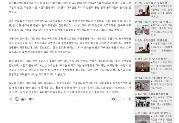[2024.05.10]동북일보_시립강북노인종합복지관, 2024년 홍천 문화체험(나들이) 진행