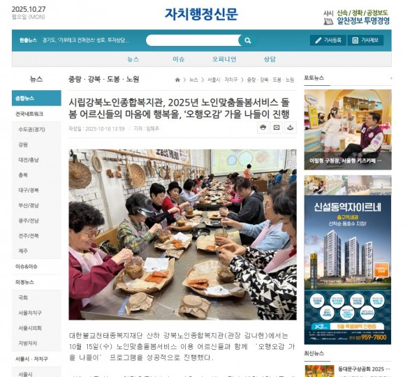 [2025.10.16] 시립강북노인종합복지관, 2025년 노인맞춤돌봄서비스 돌봄 어르신들의 마음에 행복을, ‘오행오감’ 가을 나들이 진행 - 자치행정신문