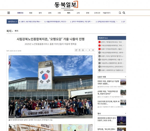 [2025.10.17] 시립강북노인종합복지관, ‘오행오감’ 가을 나들이 진행 - 동북일보